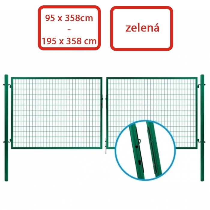 Jednoduchá, dvoukřídlá zahradní brána. Kovová konstrukce z ocelových trubek, povrchová úprava je provedena zinkem + práškovou barvou. Brána má pevnou výplň ze svařované sítě – oko 50 x 100 mm. Šířka na středy sloupků je 3526 mm u bran výšky 950 mm a 1200 mm. Šířka na středy sloupků je 3542 mm u bran výšky 1450, 1750 a 1950 mm. Zavírání na oko. Součástí dodávky jsou dva sloupky a stavitelné kloubové závěsy.