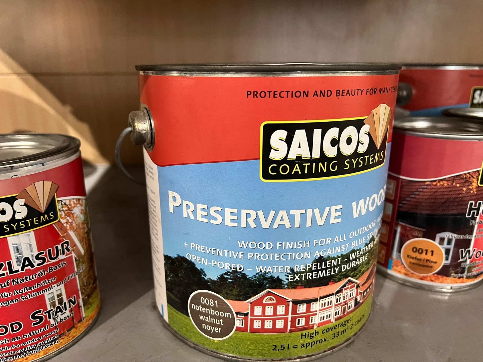 Lazury, oleje a vosky Saicos různé odstíny.
