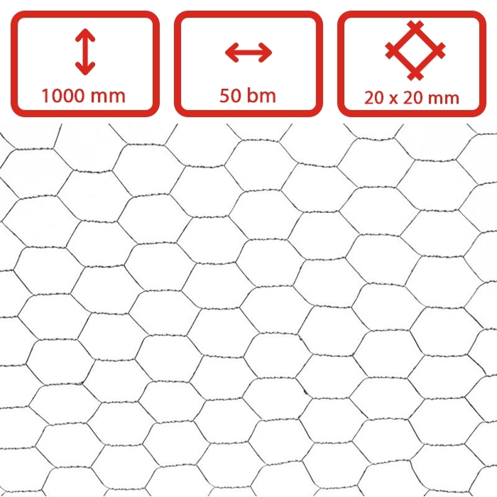 Pozinkované pletivo hexagonální - šestihranné. Velikost ok má 20 mm. Pletivo dodáváme v rolích po 50 bm.