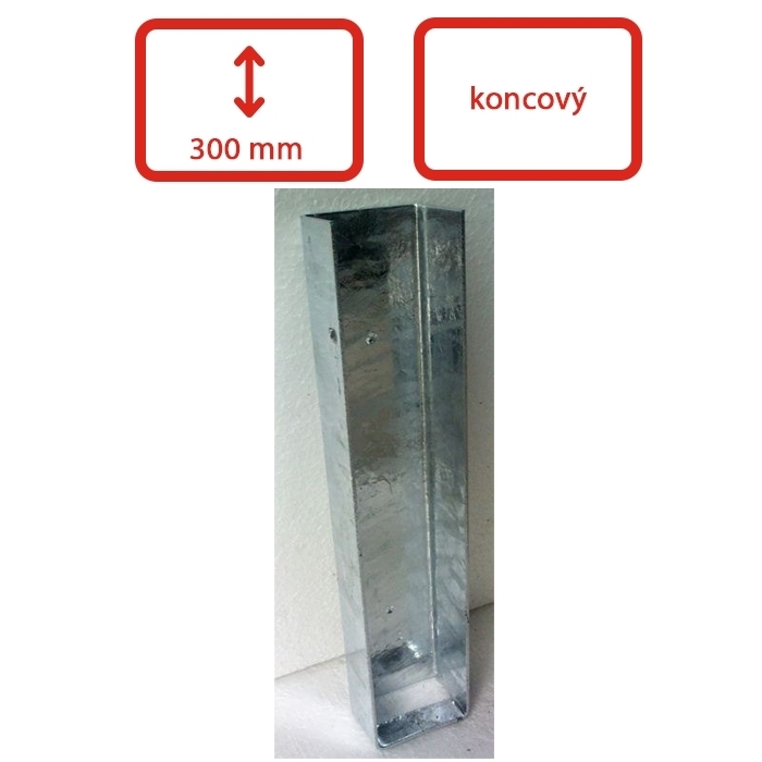 Držák je vhodná pro montáž podhrabových desek 300 mm vysokých v rozích, na prvním a posledním sloupku.