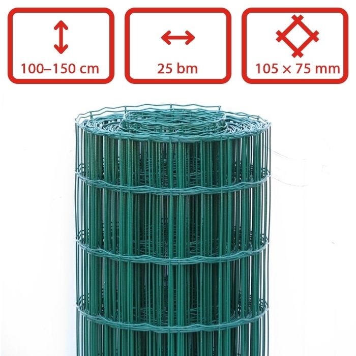 Lehké svařované pletivo je vyrobené z ocelových pozinkovaných a poplastovaných drátů. Pletivo má oka 100 x 75 mm a je svařeno z drátů o Ø 2,1 mm. Vodorovné dráty jsou zvlněné pro odvod vody a snazší formování pletiva. Pro montáž těchto druhů pletiv je vhodné použít sloupky s montážním nosem. Lze je také úspěšně montovat na kruhové sloupky poplastované. Barva pletiva je zelená. Pletivo dodáváme v rolích po 25 bm.